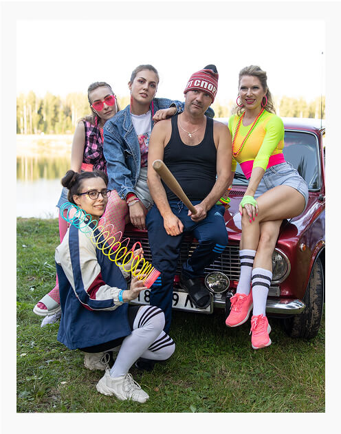 Организатор, координатор, фотограф, видеограф, ведущий, оформление площадки в стиле 90-х, спортивные состязания, песни у костра, салют